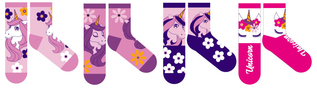 Eenhoorn kinderkatoenen normale sokken - 4 paar/pakket